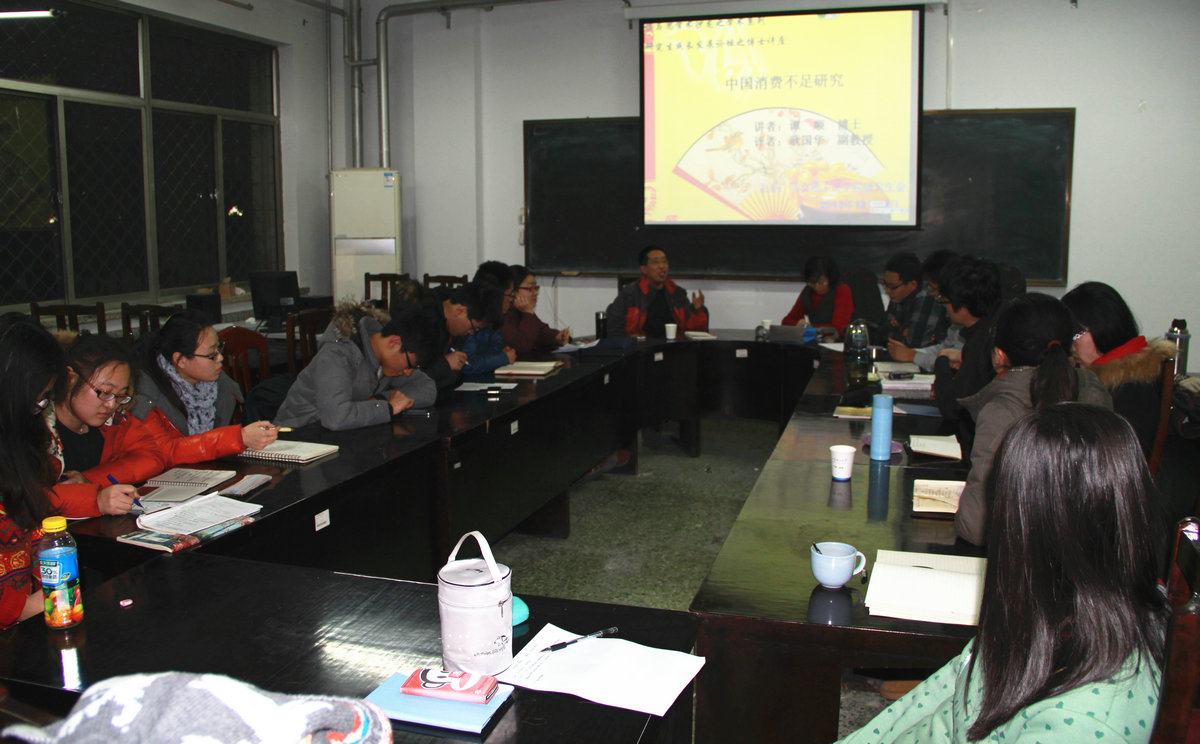 “中国消费不足研究” ——“读与思”学术沙龙暨研究生成长发展论坛继续举行 12月25日晚7点,公司“读与思”沙龙之学术系列活动暨研究生成长发展论坛之博士讲座在公司学术报告厅继续举行。本次由谭顺博士主讲,耿国华副教授点评,丁乃顺博士主持。此系列活动由公司研究生会承办,公司研究生踊跃参加。 本次活动的主题为“中国消费不足研究”。谭顺首先通过翔实的数据,展示了我国消费不足的现象,并从马克思主义经济危机理论、西方凯恩斯主义、消费需求抑制以及国际市场萎缩四个方面,阐明了中国消费结构性过剩、储蓄率高的现状。此外,他列举了一些传统的认识误区,如把国内的消费问题仅仅当成一个消费问题来看待;国内消费不足并不意味着消费需求得到了满足;消费不足不单有消极影响,也有积极影响;在解决措施上,不应该只从消费服从生产的角度来引导消费,更应从生产上入手,解决产能过剩和消费不足的矛盾。 耿国华认为在消费不足的原因问题上,很多人认为是制度、体制的问题,其实应该在制度如何有效运行上下功夫。丁乃顺则从哲学角度进行了深一步的探讨。在交流阶段,同学们结合实际情况,对当前人们的收入和支出情况讨论热烈,并针对医疗保险、当前社会主要矛盾等问题提出了自己的见解。 此次讲座主题切合实际,拓宽了同学们对中国消费不足问题的认识,不仅引起了大家的共鸣,也开阔了理论研究视野。 |