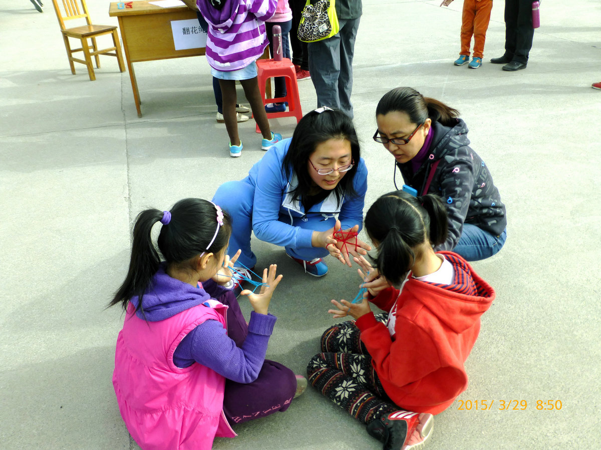 “吹泡泡”区域里,小朋友们专心致志地根据父母的提示研究着自制泡泡水;“翻花绳”的游戏中孩子们与父母结伴翻花绳,玩得不亦乐乎;