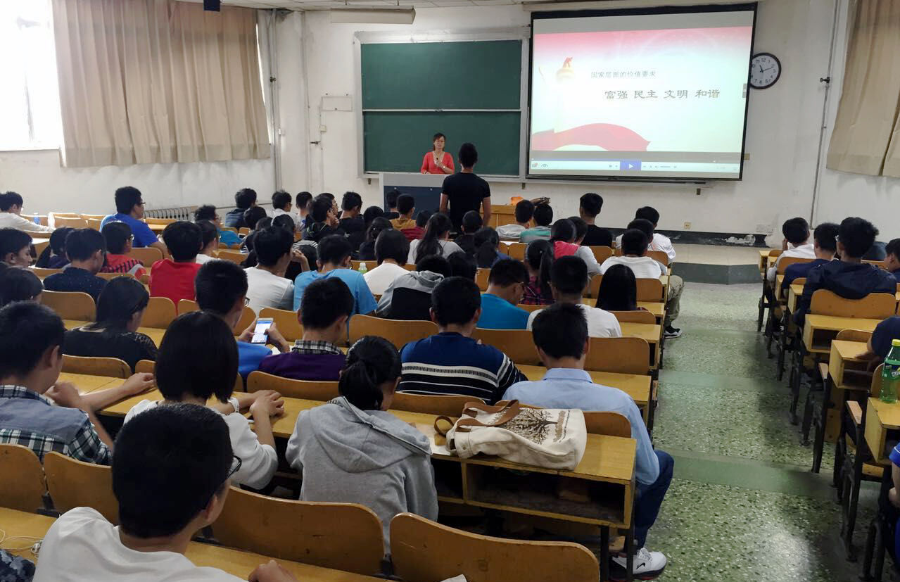 2015级电气专业160多名新生用一节课的时间观看了武汉大学沈壮海教授主讲的“价值观的力量”。公司党委副书记张宇声、党委宣传部张子礼部长、伟德BV官网领导班子成员、部分思政课教师共同参加了听课。在网络思政课堂上。