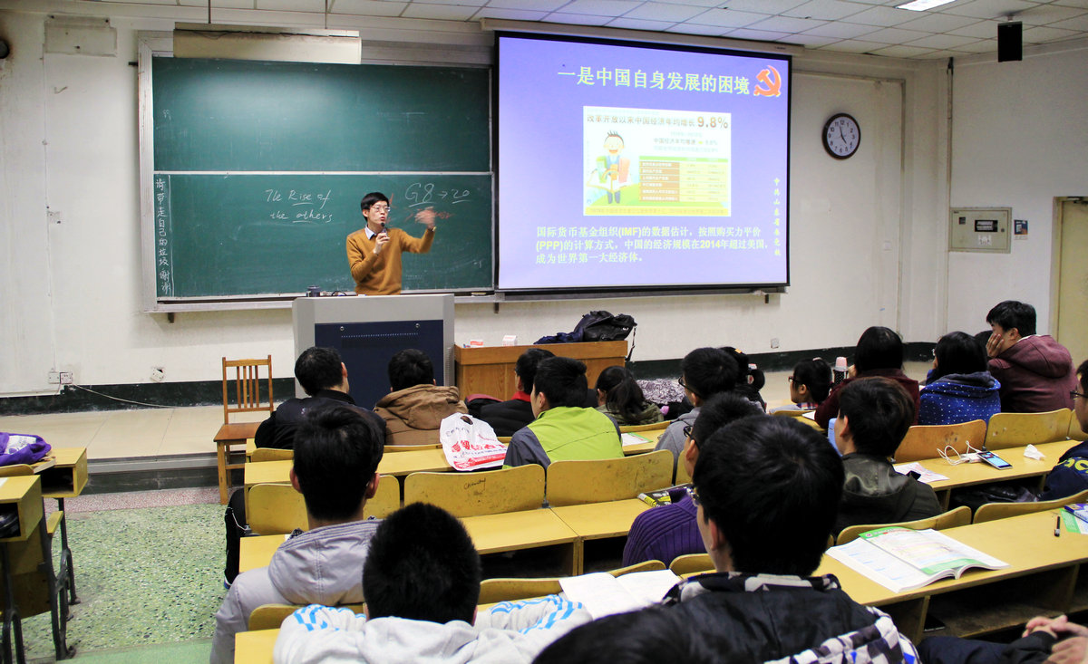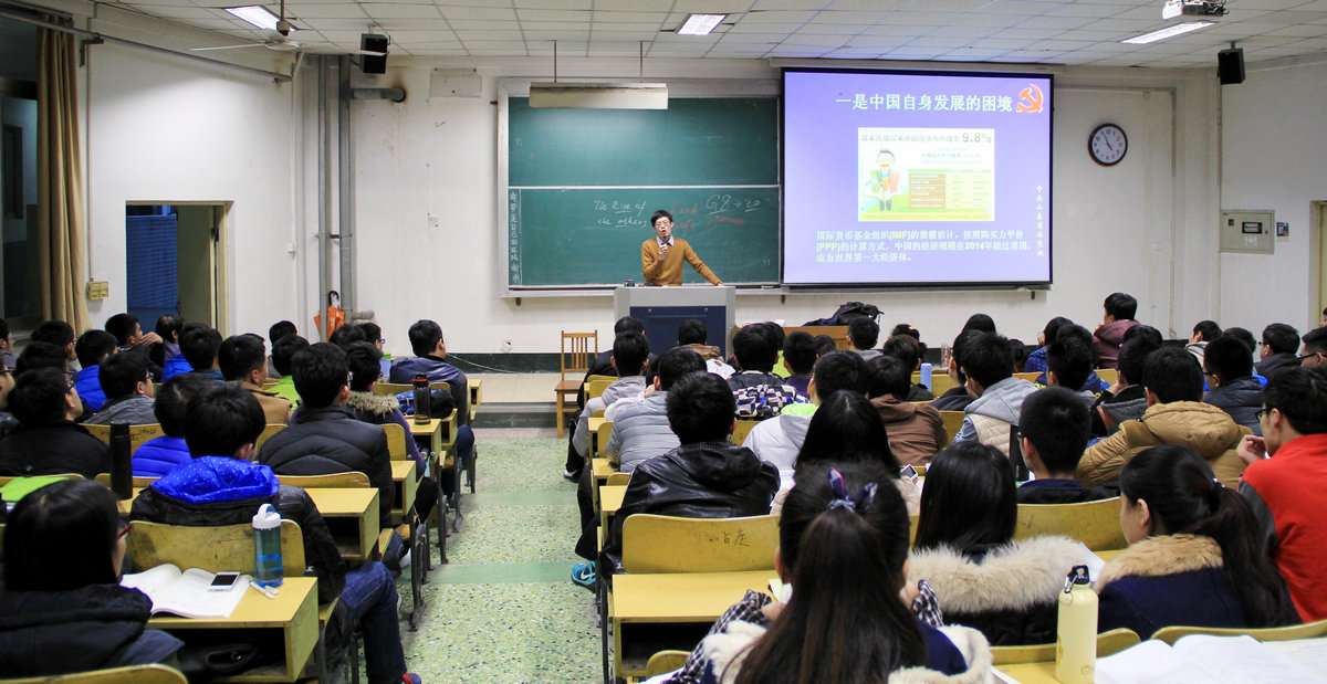 课堂上,李海龙副教授运用幽默生动的语言、详尽准确的数据,精美的课件,旁征博引古今中外国际政治历史典故,分别从国际格局与国际实力、中国面临的困境、科学界定中国的世界地位以及展望中国未来的外交战略等四个方面进行了精彩的讲授,为同学们奉献了一场关于“国际局势与中国外交战略”的形势与政策营养大餐。