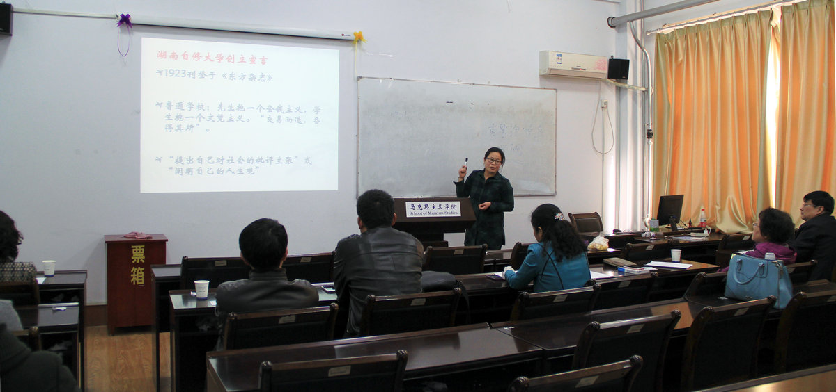 本次比赛由多年从事教学、经验丰富的专家组成评委,他们分别是公司教授委员会成员房晓军、刘芹、张爱莲,以及系主任王环、郑炳心、于宗富等6位专家。共有6名青年教师参赛,分别是马克思主义理论系的关利平、刘芳老师,思想政治教育系的王丽、郭军华、王在亮老师,形势与政策系的丁乃顺老师。 本次比赛由青年教师现场讲课和专家点评两个环节组成。在讲课环节,青年教师都展示了自己的教学特色。每位青年教师讲完后,评委们紧接着就进行认真细致的点评,从教态、板书、到内容选择、教案设计、PPT制作、案例选择、图片选取等方方面面。这次比赛对参赛老师来说不仅是一次全面考核,也为每位参赛老师提供一个了解自己、相互学习,锻炼提高的平台。专家的点评使每位参赛老师都受益匪浅,有助于青年教师教学水平的提升。