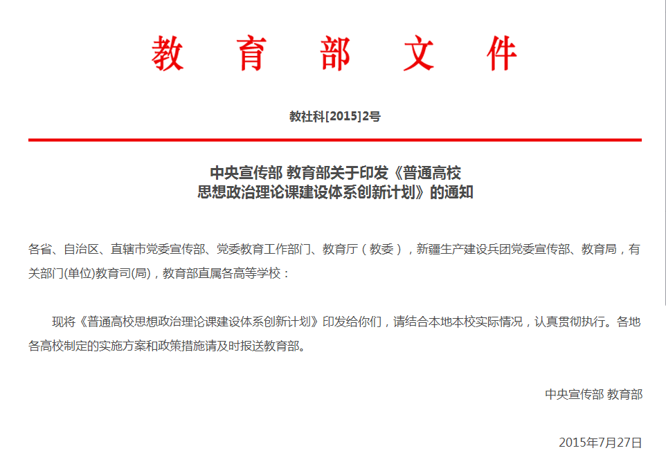 普通高校思想政治理论课建设体系创新计划 为贯彻落实党的十八大和十八届三中、四中全会精神,贯彻落实习近平总书记系列重要指示精神,根据中共中央办公厅、国务院办公厅《关于进一步加强和改进新形势下高校宣传思想工作的意见》,特制定本计划。 一、充分认识办好高校思想政治理论课的重要性艰巨性 高校肩负着学习研究宣传马克思主义、培养中国特色社会主义事业建设者和接班人的重大任务。思想政治理论课是巩固马克思主义在高校意识形态领域指导地位,坚持社会主义办学方向的重要阵地,是全面贯彻落实党的教育方针,培养中国特色社会主义事业合格建设者和可靠接班人,落实立德树人根本任务的主干渠道,是进行社会主义核心价值观教育、帮助老员工树立正确世界观人生观价值观的核心课程。办好思想政治理论课,事关意识形态工作大局,事关中国特色社会主义事业后继有人,事关实现中华民族伟大复兴的中国梦,必须始终摆在突出位置,持之以恒、常抓不懈。 近些年来,在党中央坚强领导下,各部门和各地各高校认真实施新课程方案,采取一系列重大举措,全面加强和改进思想政治理论课,深入推进中国特色社会主义理论体系进教材进课堂进员工头脑。统一编写使用本专科4本教材和研究生5门课程教学大纲。初步构建三级教师培训体系,队伍规模不断扩大,结构进一步优化。全面推进教学科研改革,优化教学内容,创新课堂教学形式,推广了一批行之有效的教学方法。设立马克思主义理论一级学科,为思想政治理论课建设提供坚实的学科支撑。思想政治理论课课程和教材建设进一步规范,教师队伍综合素质不断提高,课堂秩序和教学效果明显改善,老员工学习兴趣和满意程度得到提升,思想政治理论课建设的良好局面已经形成,为加强和改进老员工思想政治教育,维护高校改革发展稳定大局作出了重要贡献。 同时,也必须清醒地认识到,世界范围内各种思想文化交流交融交锋更加频繁,如何发挥正能量,增强对重大理论和现实问题的阐释力,在多元中确立主导,给思想政治理论课提出新的挑战。必须清醒地认识到社会思想意识更加多元多样多变,面对各种思潮和复杂的社会现象,如何运用马克思主义的立场观点方法在多样中求得共识,给思想政治理论课提出新的要求。 思想政治理论课建设自身也还存在许多困难和不足:一些地方和高校对思想政治理论课仍然重视不够,政策条件保障尚未落实到位,思想政治理论课在高校考核评价体系中的地位和作用不够突出;统筹推进教材修订完善、教师队伍建设、教学方法改革的意识不强,思想政治理论课建设体系尚未完全形成;教师队伍建设不适应思想政治理论课改革发展需求,整体素质亟待提升;改革创新的手段不多,制约思想政治理论课针对性实效性的瓶颈亟待突破;有效整合全社会资源的力度不够,思想政治理论课建设全员全方位全过程育人的格局仍需巩固。必须深入贯彻落实习近平总书记重要批示精神,充分认识思想政治理论课建设的重要性、长期性、艰巨性、复杂性,以执着的信念、坚定的信心,攻艰克难,勇于创新,切实把思想政治理论课办好。 二、高校思想政治理论课建设体系创新计划的指导思想、基本原则和目标任务 高校思想政治理论课建设体系创新计划的指导思想是:高举中国特色社会主义伟大旗帜,以马克思列宁主义、毛泽东思想、邓小平理论、“三个代表”重要思想、科学发展观为指导,深入贯彻落实党的十八大和十八届三中、四中全会精神,深入贯彻落实习近平总书记系列重要讲话精神,深入贯彻落实《关于进一步加强和改进新形势下高校宣传思想工作的意见》精神,全面贯彻党的教育方针,立足坚定老员工对中国特色社会主义的道路自信、理论自信、制度自信,以教材体系、人才体系、教学体系建设为核心,以学科支撑体系、综合评价体系、条件保障体系建设为关键,以推动综合改革创新为动力,以问题为导向,以公司产品实效性为评价标准,进一步坚定信心,强化责任,系统规划,整体推进,落实思想政治理论课在高校立德树人工作中的战略地位,把培育和践行社会主义核心价值观融入教书育人全过程,为实现“两个一百年”奋斗目标、实现中华民族伟大复兴中国梦发挥应有的作用。 实施高校思想政治理论课建设体系创新计划的基本原则是:坚持理论与实际相结合,注重发挥实践环节的育人功能,创新推动员工实践教学和教师实践研修。坚持教学与科研相结合,努力探索攻克教学难关,强化马克思主义理论学科和科研对教学的支撑作用。坚持教师讲授与员工参与相结合,注重师生教学互动,充分调动员工学习的主动性积极性。坚持课堂教学与日常教育相结合,积极拓展思想理论教育渠道,创新发挥第二课堂的教育作用。坚持思想政治理论课与专业课相结合,注重发挥所有课程的育人功能,所有教师的育人职责。坚持校内与校外相结合,注重资源整合,探索建立全社会关心支持思想政治理论课建设的长效机制。 实施高校思想政治理论课建设体系创新计划的目标是:整体推进教材、教师、教学等方面综合改革创新,编写充分反映马克思主义中国化最新成果、教师好用员工爱读的系列教材,建设一支对马克思主义理论真学、真懂、真信、真用的教师队伍,培育推广理论联系实际、富有吸引力感染