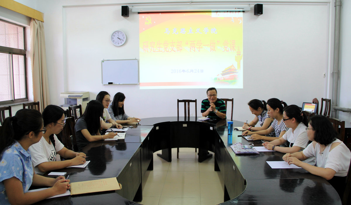 为充分发挥毕业生党员在就业及文明离校工作中的先锋模范带头作用,进一步增强毕业生党员的身份意识,提高毕业生党员的党性修养,以昂扬的精神面貌走向新的工作岗位和学习生活,6月24日下午马克思主义公司党总支在鸿远楼511会议室为毕业生党员上了最后一次党课。公司党总支书记张双、研究生辅导员朱艳红、2016届研究生毕业生党员及研一、研二员工党员参加了本次党课。