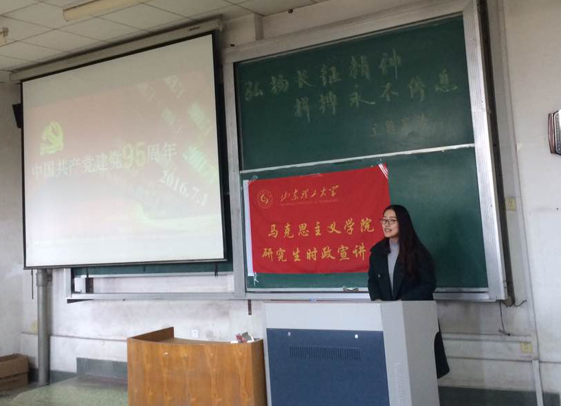 为了深入学习、宣传、践行习近平总书记“七一”讲话精神。公司研究生时政宣讲团应理公司团总支之邀,于11月3日下午在理公司206教室就习近平总书记“七一”讲话进行宣讲。