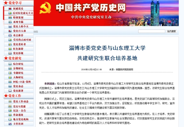 近日,由中共中央党史研究室主办的中国共产党历史网对公司与中共淄博市委党史委共建研究生联合培养基地进行了详细报道。