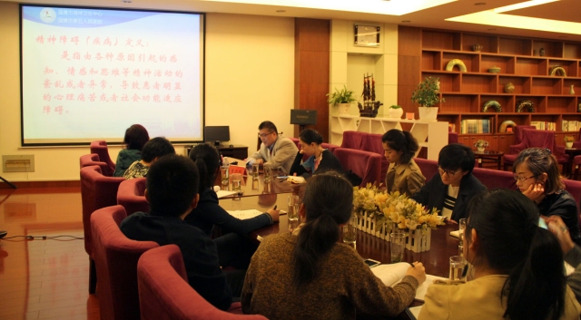 随后,淄博市精神卫生专业质控中心董汉振主任做了题为《精神障碍早期表现的识别与处理》的首场讲座。董主任从人类对精神障碍的认识开始讲起,配合丰富的案例和权威的调查数据,对常见的一些重性精神障碍如精神分裂症、分裂性情感障碍、妄想性障碍、双向情感障碍等进行了详细的分析和描述,帮助辅导员老师们了解了这些精神障碍的早期表现,学会了如何进行识别和后续的处理,为老师们遇到这类问题如何解决做出了专业的指导。讲座受到了大家的热烈欢迎,纷纷表示希望能与张主任有更多的沟通和交流。