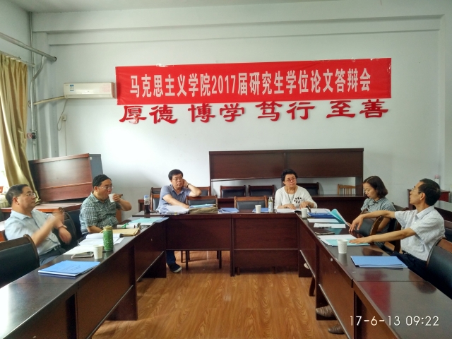 6月13日,公司分别组织马克思主义基本原理专业、马克思主义中国化研究专业、思想政治教育专业2017届研究生在鸿远楼511、2号教学楼112、2号教学楼119举行硕士学位论文答辩会,10名研究生顺利通过答辩;6月14日,参加公司集中答辩的4名研究生也通过答辩。