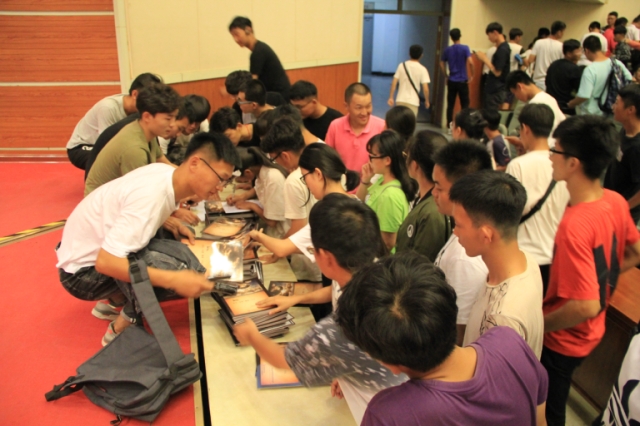 讲座结束后,心理中心的学长学姐们为新生发放专为他们精心准备的迎新杂志,来领取的同学络绎不绝。