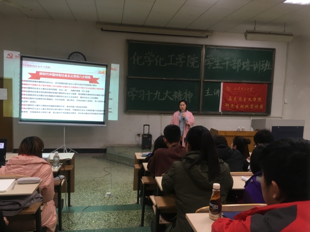 为深入贯彻学习党的十九大精神,深刻学习习近平总书记所做报告的重要内容,公司研究生时政宣讲团应化工公司的邀请,于11月16日下午两点半在4号教学楼203 教室为化工公司的员工会干部进行了以十九大精神为主题的时政宣讲。