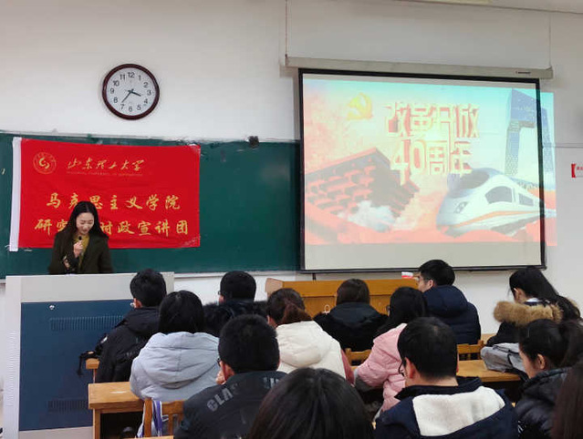 2018年是改革开放40周年。为了纪念改革开放40周年,回顾40年的光辉历程,感受40年的伟大巨变,公司研究生时政宣讲团应材料科学与工程公司的邀请,于12月13日下午三点半在13教117教室为材料科学与工程公司的员工党员、入党积极分子和员工干部进行了以“改革开放40年回顾与展望”为主题的时政宣讲。