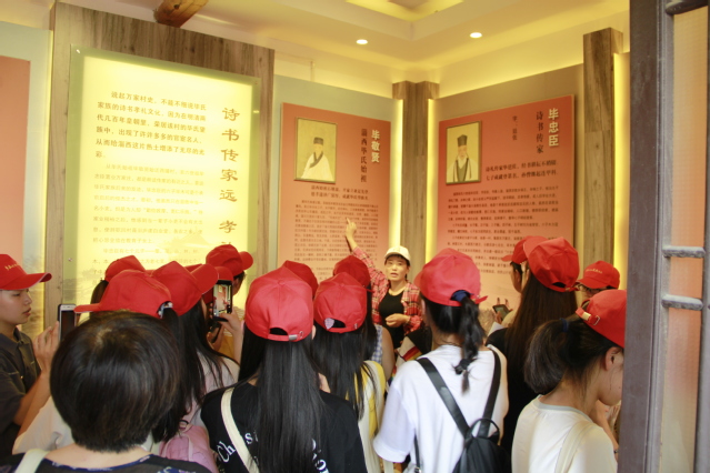 接下来,万家村毕红叶老师带领同学们进行现场实地教学,重点对万家村的村名由来、明清三代尚书的成长和发展史、毕氏家族的优良家风家训及其传承、投豆亭和尚书拉车等经典传统故事的内容及现实意义、万家村的生产生活习俗等,进行了一个半小时的重点讲授。
