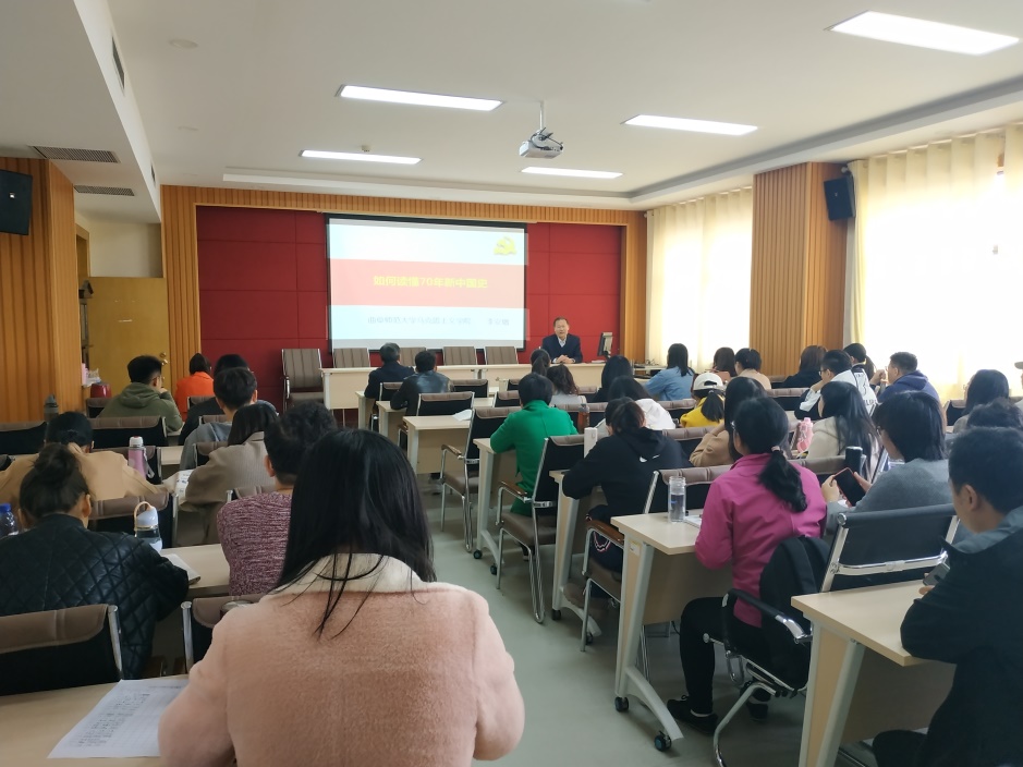 2019年11月1日,伟德BV官网邀请曲阜师范大学马克思主义公司党委书记、经理、博士生导师、泰山学者李安增教授为2019级博士生作了《如何读懂70年新中国史》的精彩学术报告。本次活动是博士生公共课——思想政治理论课四环节教学模式的名师讲坛活动之一,报告会由伟德BV官网副经理房晓军教授主持,全校2019级博士生、伟德BV官网2019级全体研究生与部分老师参加了报告会。