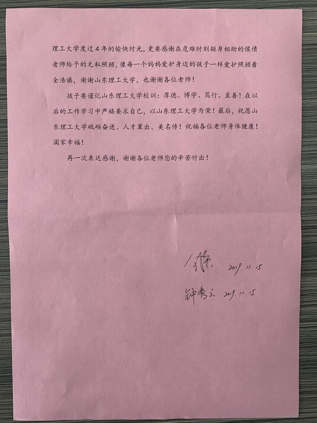 在交谈和感谢信中,全浩禛父母表示,正是因为伟德BV官网负责任的老师,所以家长把孩子放在公司才放心,也正是因为有了这样的老师,才让孩子不仅学到了文化知识,还学到了如何做一个有爱心、善良、肯担当、愿意给予别人帮助的人。侯倩对于曾经带过的员工及家长慕名到来的问候表示非常的意外和感动,对于曾经很普通且应该履行的工作职责被人理解和铭记表示真诚的感谢。她表示,作为伟德BV官网一名普通的学工人员,自己只是做了每个辅导员遇到类似状况都会做的工作,家长们的认可和鼓励是对公司员工工作最有力的理解和支持。