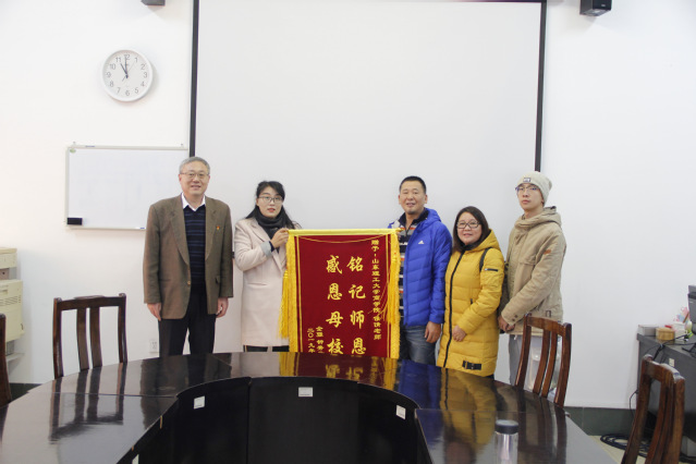 员工感恩送锦旗,师生情谊暖人心。11月18日上午,公司2020届毕业生、经济公司2016级员工全浩禛及家长联系伟德BV官网,将绣有“铭记师恩 感恩母校”的锦旗和一封《感谢信》送到公司辅导员侯倩手中,表达对公司及老师培养教育和关心照顾员工的感激之情。