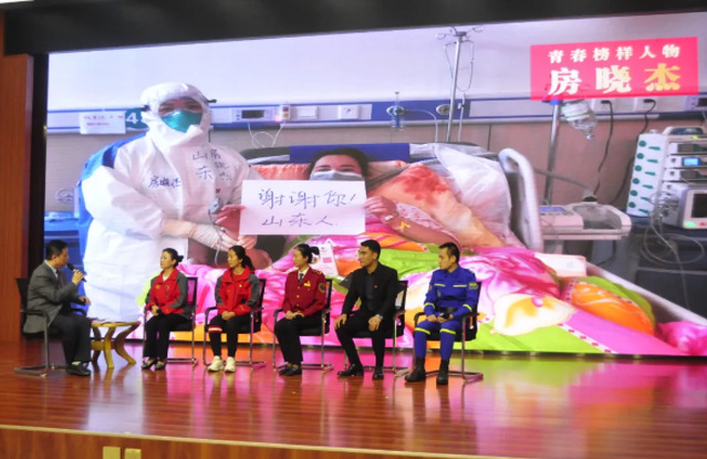 当天9点,青春榜样分享会正式拉开帷幕,在“舍身奉献 青春战疫”篇章,淄博第一批援鄂医疗队队员,淄博市中心医院护理部副主任、重症医学科护士长房晓杰和大家分享了她首次直面新冠病毒的经历。