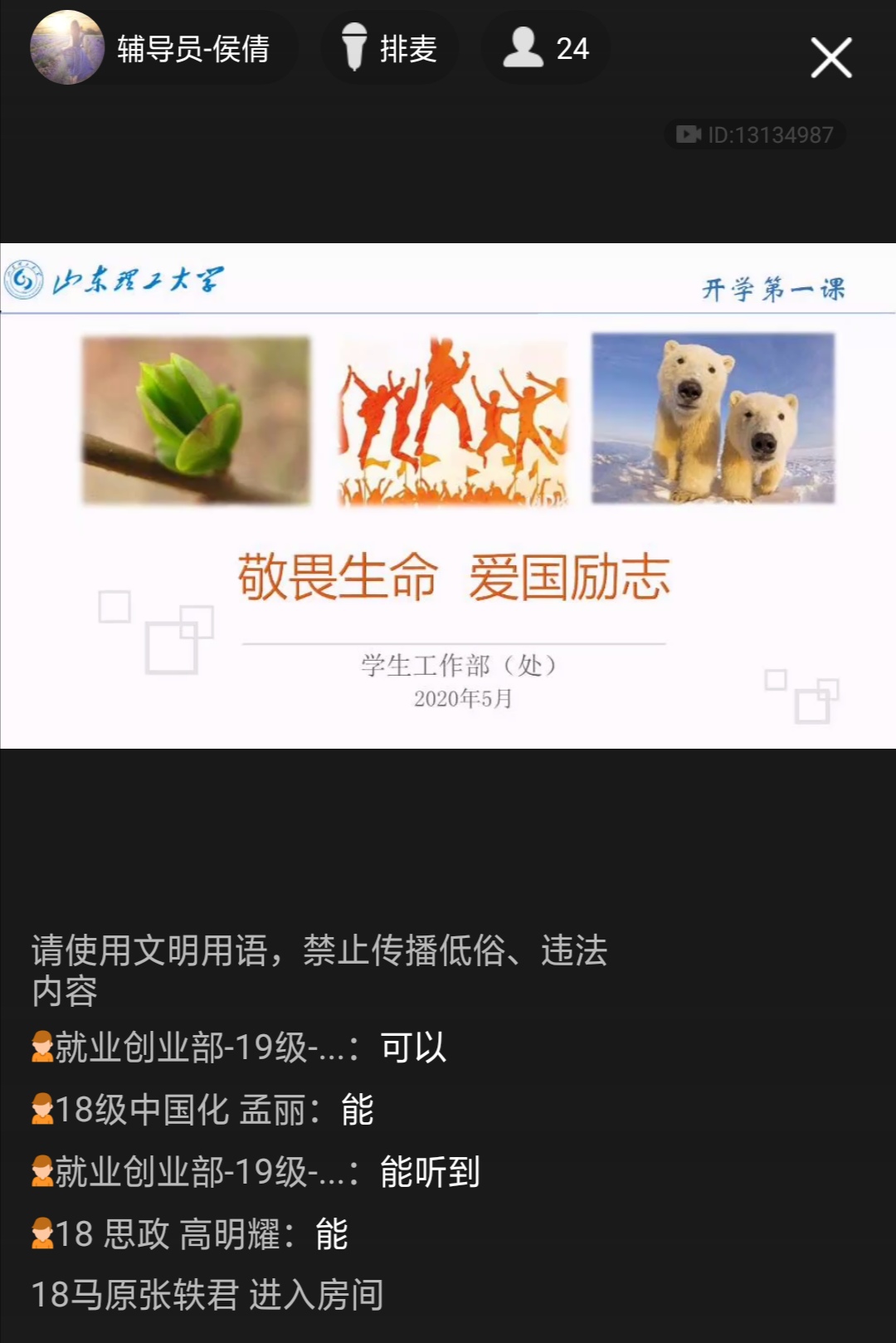 公司开展“敬畏生命,爱国励志”线上主题班会