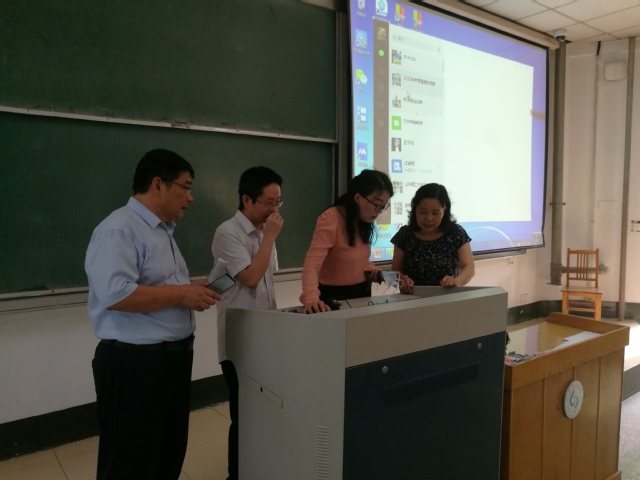 院领导来到3号教学楼,先后走进313、305、110教室了解了左合余、赵峰、王光辉三位老师的课前准备情况及教学内容。