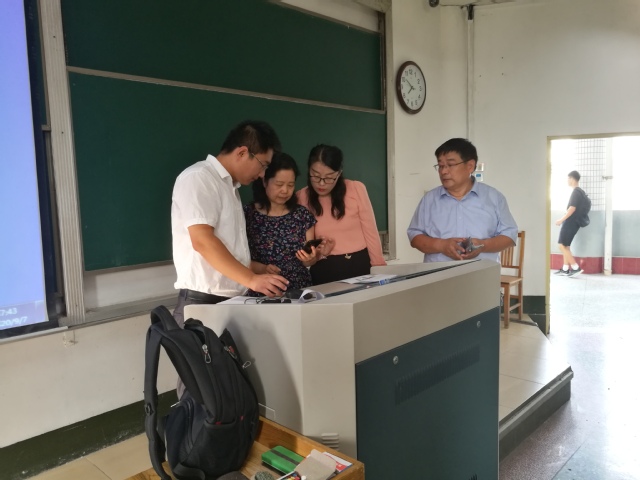 院领导来到3号教学楼,先后走进313、305、110教室了解了左合余、赵峰、王光辉三位老师的课前准备情况及教学内容。