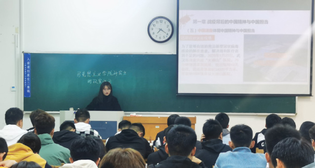 宣讲团成员结合时政热点,围绕“脱贫攻坚”“抗疫精神”“国家安全”“抗战精神”等主题,以生动活泼、喜闻乐见、易于接受的丰富形式,向同学们展示了脱贫攻坚的中国经验、战疫背后的中国精神与中国担当、如何构建全球抗疫的人类命运共同体、如何践行国家总体安全观、新时代如何继承和弘扬抗战精神、以人民为中心的治国理政理念。不同主题的时政宣讲,契合了不同班级团建与入学教育的个性化需求,丰富了理工科公司员工的课余文化生活,丰富了新生的理想信念教育内容。与会同学认真聆听,仔细记录,积极互动,气氛十分融洽。