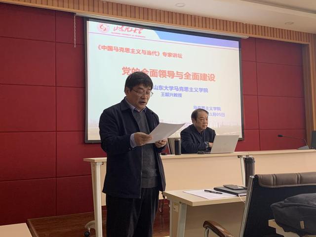 王韶兴教授作了题为“党的全面领导与全面建设”的精彩学术报告。王教授的报告从六个方面对中国共产党的发展历程、党的全面领导及党的建设这一伟大工程做了详实而又深刻的阐释。