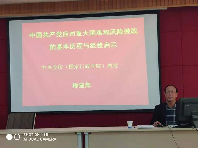 柳教授在报告中,回顾了建国以来在中国共产党领导中国人民在发展过程中所遭遇的一些重大历史事件的考验,总结了中国共产党有效处理重大困难和风险的能力与对策。面对这些重大困难与风险的挑战,正是有了中国共产党的坚强领导,才使得中国社会发展与转型转危为安,凸显出了中国共产党在应对风险和挑战中的坚定自信、独立自主、艰辛探索的特点,为中国的社会主义革命、改革与建设及实现中华民族复兴中国梦做出了巨大贡献。