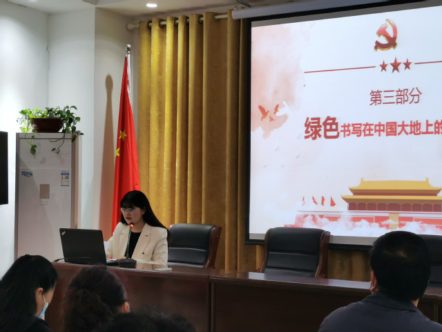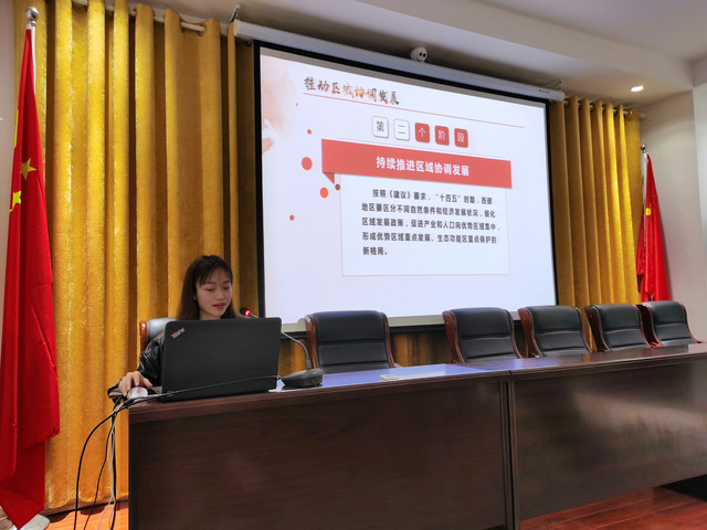 宣讲团成员付佳艺从学习“四史”的重要意义出发,通过生动的实例与详实的资料,梳理了新发展理念的逻辑脉络,分享了改革开放以来我国在新发展理念指导下所取得的巨大成就。宣讲团成员孙艺菡结合城西社区疫情防控与党群工作的实例,为大家生动阐述了改革开放的伟大成就离不开社区每个人的奋斗与奉献。宣讲内容较丰富、贴近性较强,现场气氛活跃。