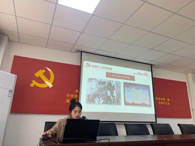 在宣讲活动现场,宣讲团成员张乐琳就党史的发展脉络以及学习意义进行简单阐述,通过生动的人物和案例,对新民主主义革命时期的重要精神进行阐释。宣讲团成员张倩展示了改革开放以来中国所取得的伟大成就,并通过生动故事的讲述,展现了优秀共产党员践行使命的伟大事迹。随后,张倩通过对疫情防控、垃圾分类等社区工作先进实例的讲述,使大家直观感受到了新时代的伟大成就离不开社区每个党员的奉献。宣讲内容丰富、现场气氛融洽。