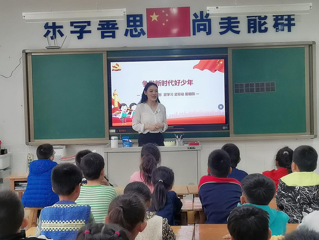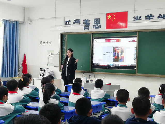 在三年级一班活动现场,宣讲团成员牛婷娴通过讲述长征途中张思德的艰苦故事,向大家阐明了如何践行立志向、有梦想、爱学习、爱劳动、爱祖国的新时代好少年的初心与使命。