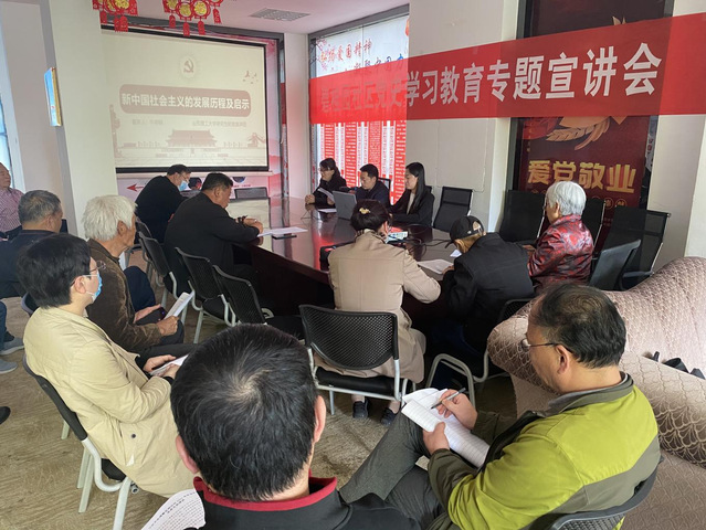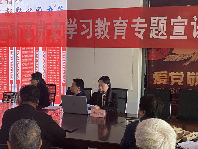4月28日下午,在公司研究生党支部的推荐和指导下,公司研究生时政宣讲团成员走进周村区碧桂园社区,开展了题为“新中国社会主义的发展历程及启示”的主题党史宣讲。公司研究生辅导员侯倩、宣讲团团长于玲全程跟队指导,碧桂园社区党员及工作人员现场聆听。