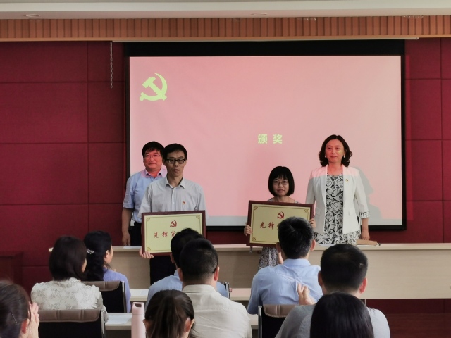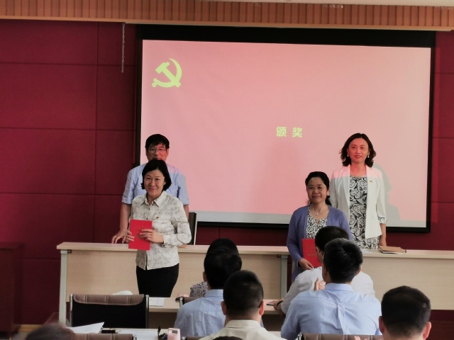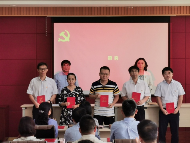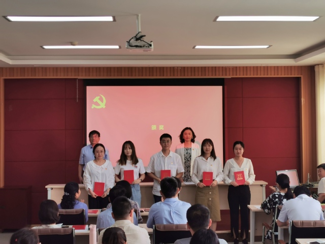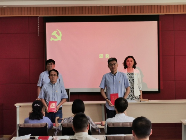 公司党总支书记郭奎霞、副经理房晓军为获奖的先锋党支部、青年导师先锋、教书育人先锋、理论宣讲先锋、管理示范岗、研究生“五有人才”先锋共产党员获得者颁奖。