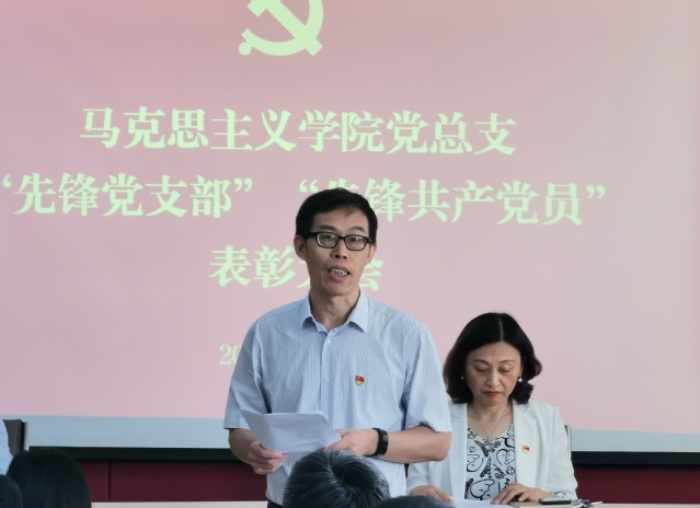 “原理教学部党支部”书记温立武老师代表先锋党支部发言。他表示,党支部是党的基层组织,是党联系广大人民群众的桥梁和纽带。作为党支部书记,应抓实基层党建职责,对标争先,积极作为,带领党支部和广大党员在公司各项工作中积极发挥先锋模范作用。