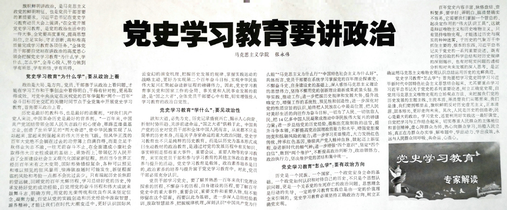 党史学习教育要讲政治----校报刊发公司张永伟老师文章