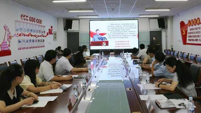 签约仪式结束后,双方教师代表围绕将习近平总书记“七一”重要讲话精神融入思政课教学进行了集体备课活动,活动由邵黎明经理主持。淄博职业公司陈晓雯老师,以“弘扬伟大建党精神、勇担青年时代责任”为题进行了20分钟的教学展示,讲授逻辑严密、精彩纷呈、生动感人,赢得大家热烈掌声和好评。