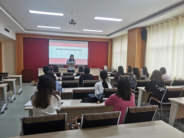 为推动2021下半年时政宣讲工作顺利开展,9月6日上午,公司于鸿远楼618 室举行时政宣讲动员会。会议由时政宣讲团团长于玲主讲,2021级全体研究生参加。