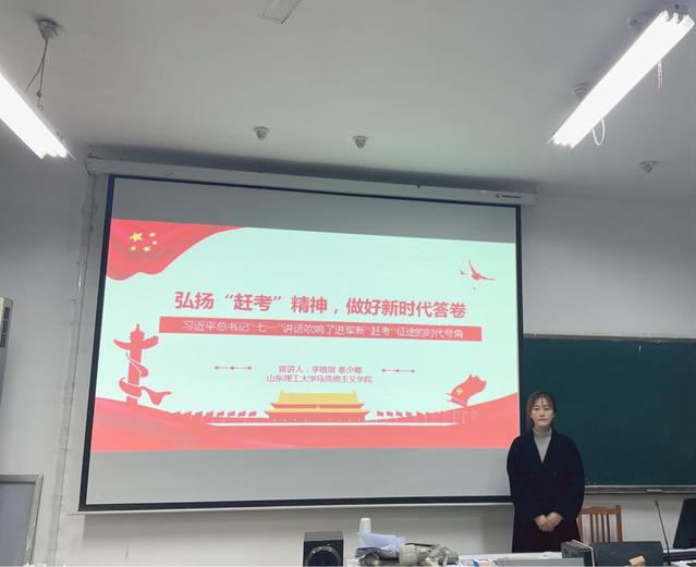 11月24日晚,公司研究生时政宣讲团成员李琪琪于8号教学楼508室开展了题为“弘扬‘赶考’精神,做好新时代答卷”的主题宣讲活动,研究生时政宣讲团负责人毛文文全程跟队指导,外国语公司各年级员工骨干参加活动。