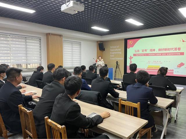 12月9日下午,公司研究生时政宣讲团成员李胜亚、李琪琪到农业工程与食品科学公司开展了题为“四个伟大成就,读懂百年党史”和“弘扬‘赶考’精神,做好新时代答卷”的团校主题宣讲活动,研究生时政宣讲团负责人毛文文全程跟队指导,农业工程与食品科学公司2021级全体班委参加活动。