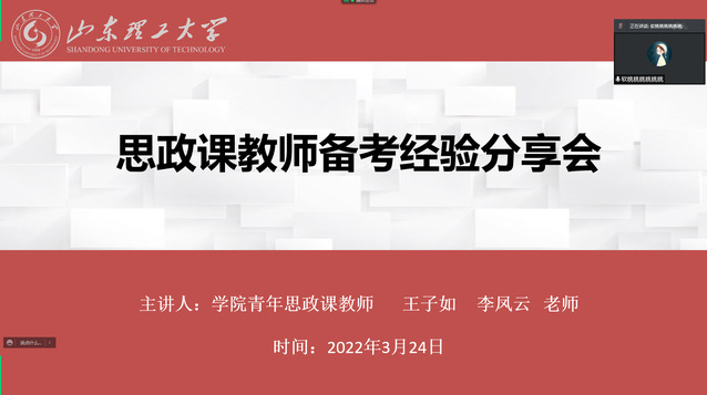 为引导公司研究生进一步明确学业规划方向,增强研究生求职备考的针对性和有效性,3月24日下午,公司通过腾讯会议的方式,组织举办思政课教师备考经验分享会,会议特邀公司2020年入职的王子如、李凤云两位青年思政课教师担任主讲,辅导员侯倩主持会议,公司全体研究生参加。