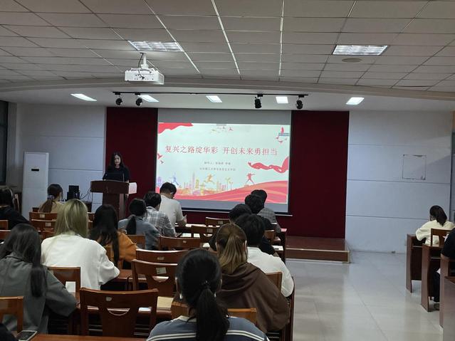宣讲团成员张艳娇开展了题为“复兴之路绽华彩,开创未来勇担当”主题宣讲活动。她聚焦《新时代的中国青年》白皮书中阐述的中国青年坚守“永久奋斗”的光荣传统,从“在平凡岗位上奋斗奉献”“在急难险重任务中冲锋在前”“在基层一线经受磨砺”“在创新创业中走在前列”“在社会文明建设中引风气之先”五个方面,分别讲述了展现青春风采的优秀青年,引导同学们从先进青年身上汲取光辉力量。最后,她带领同学们学习了习近平总书记对广大共青团员作出的“五个模范”具体要求,她讲到,广大青年人要牢记习近平总书记的嘱托,努力成长为有理想、敢担当、能吃苦、肯奋斗的新时代好青年。
