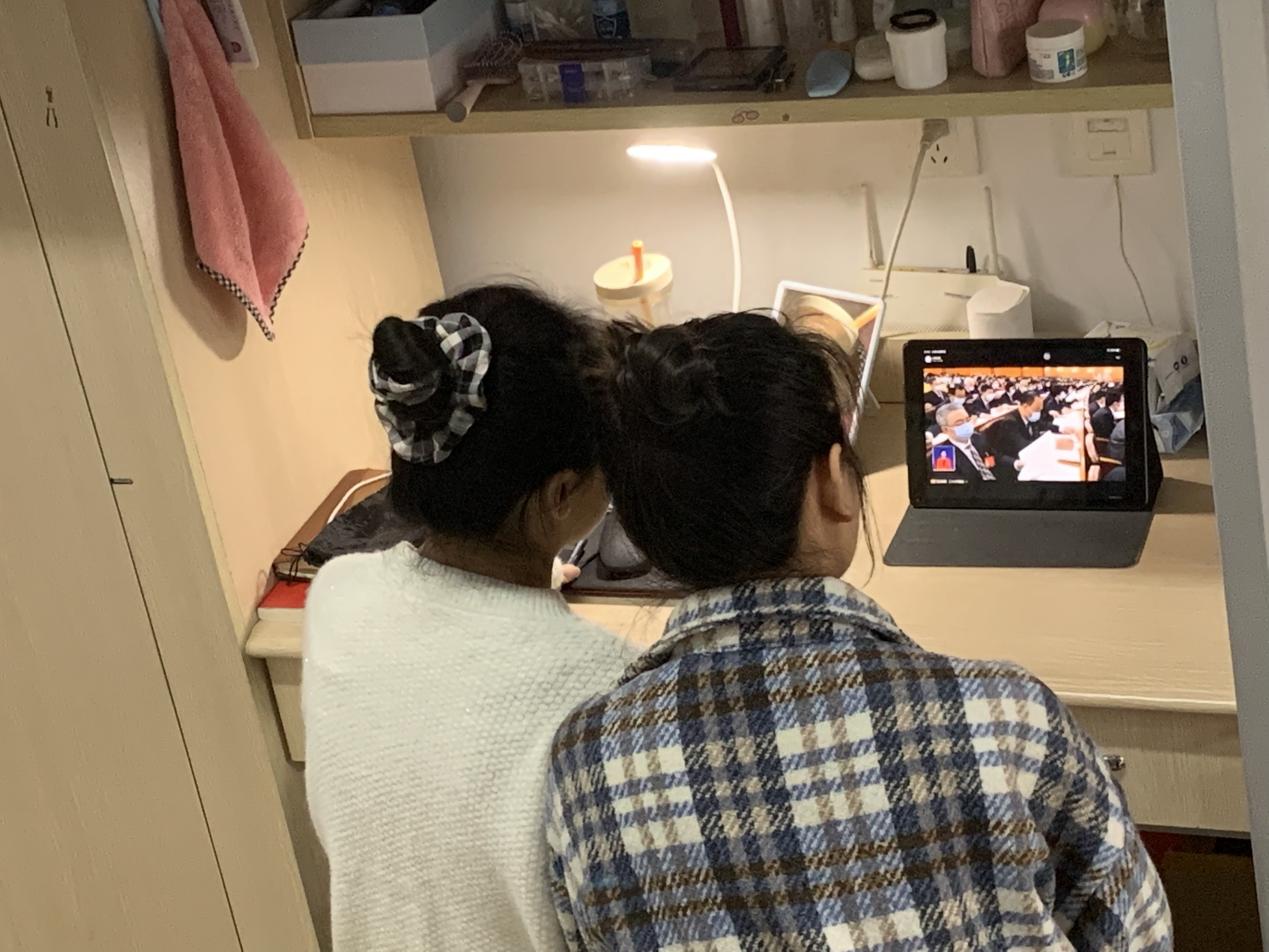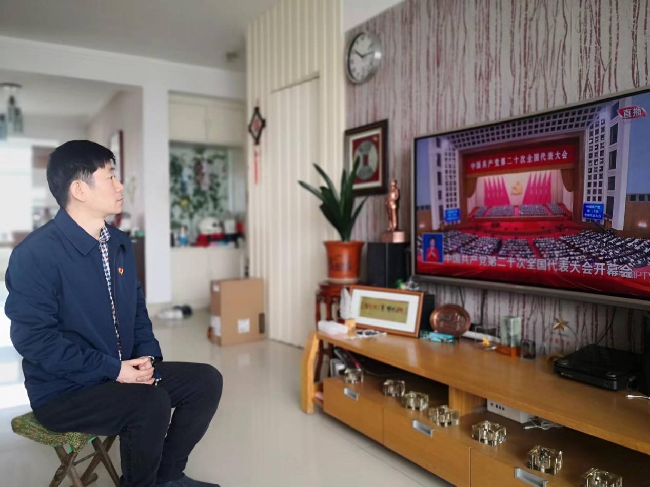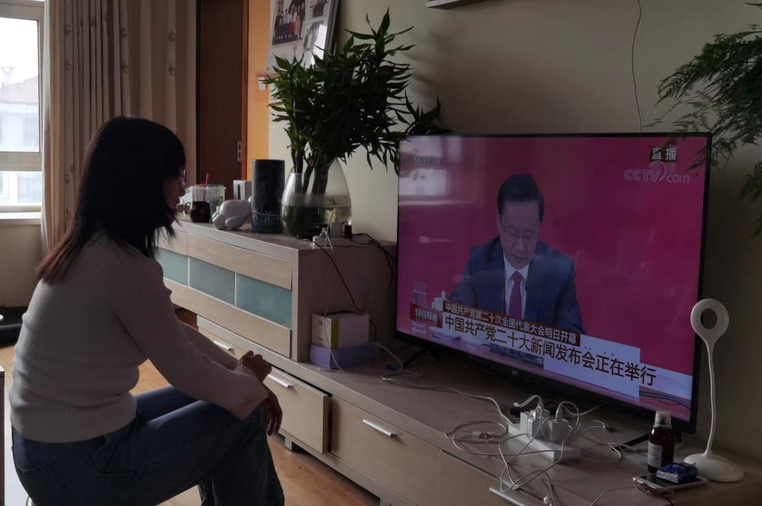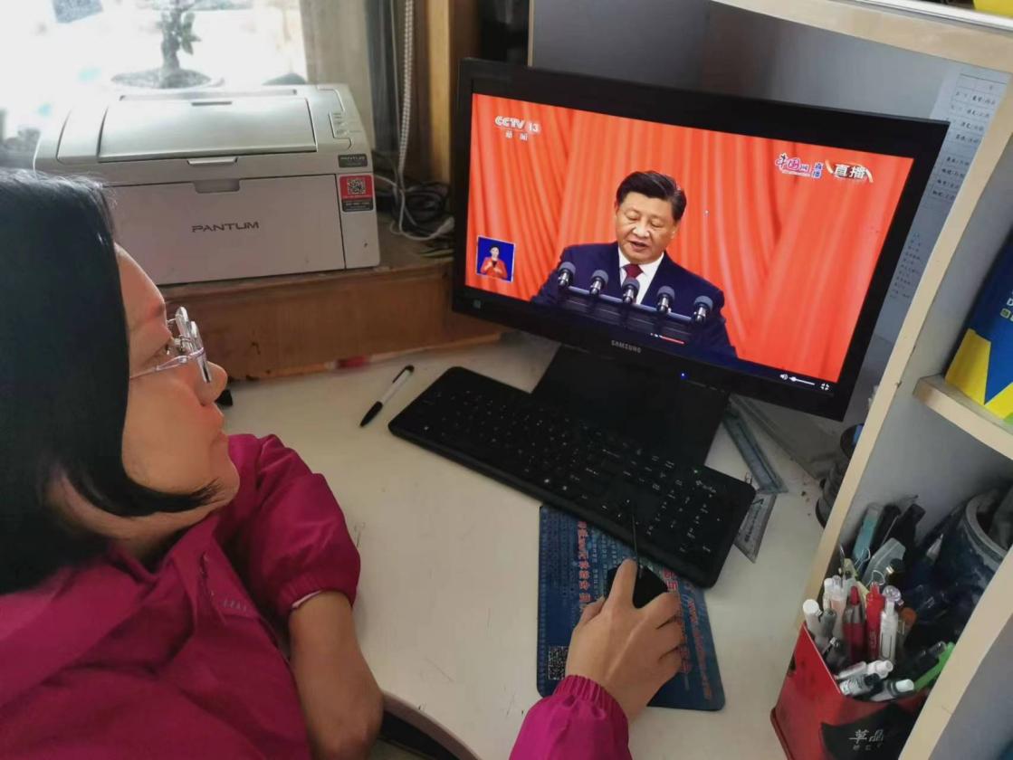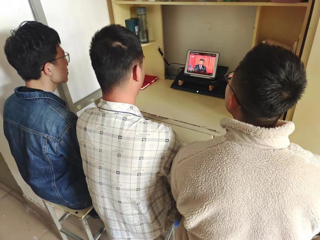 员工们在宿舍和教室收看二十大开幕会