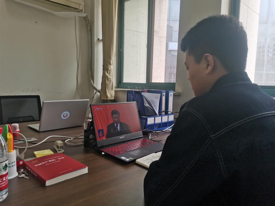 广大师生居家或者在宿舍通过电视、电脑、手机等多种渠道收看收听了直播盛况,共同参与见证党和国家这一重大的历史时刻。
