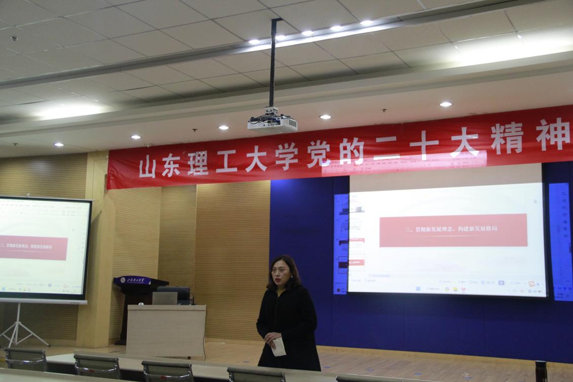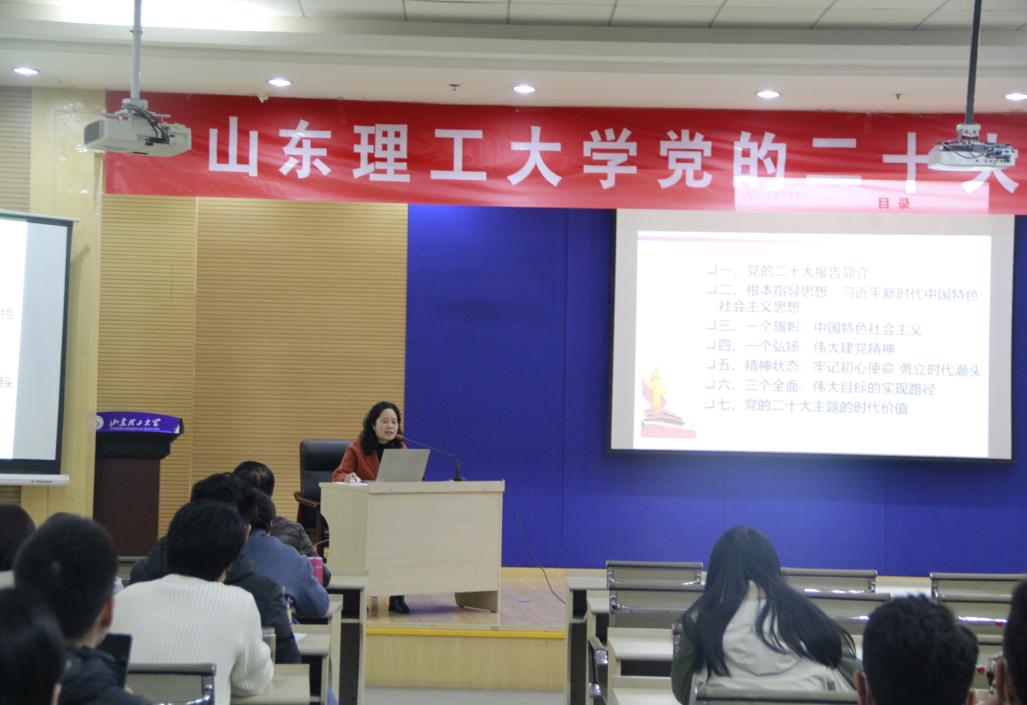 副经理刘芹首先从党的二十大报告简介、学习宣讲的核心材料、学习宣讲的主要内容、学习宣讲的基本要求这四个方面对宣讲工作做了一些简要介绍。选取 “学思践悟,知行合一——深刻领会党的二十大报告主题”和“牢记三个务必,坚定历史自信增强历史主动”两个主题作了具体的分享。