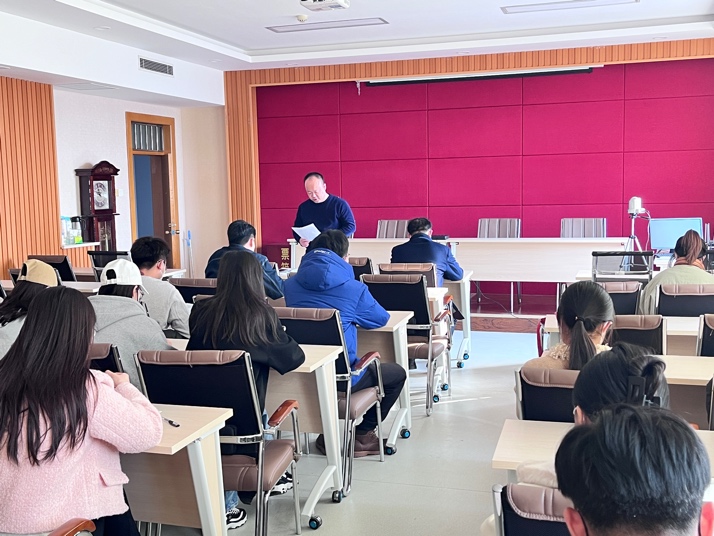会上,辅导员王寿朋就新学期公司工作安排进行了细致的讲解。他围绕疫情防控、员工管理、日常事务、学业规划、员工心理健康等多方面展开,就新学期研究生学业与就业规划作了强调,他希望研究生能明确目标,充分利用时间,找准学习的状态,努力提高自己的综合素质。