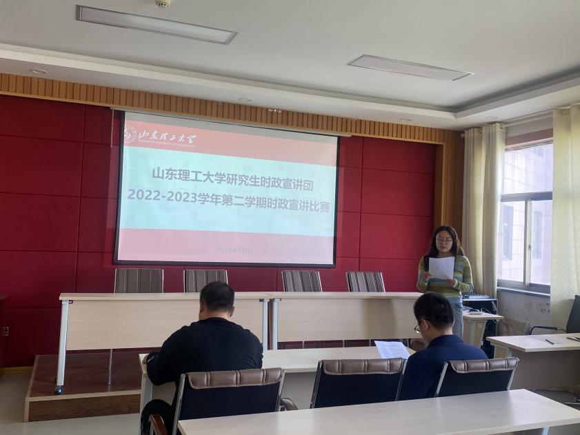 4月19日上午,公司于鸿远楼618室举行研究生时政宣讲比赛,公司教学科研办公室主任张永伟、辅导员王寿朋担任评委,2022级全体研究生参加,研究生时政宣讲团团长吕慧子主持会议。