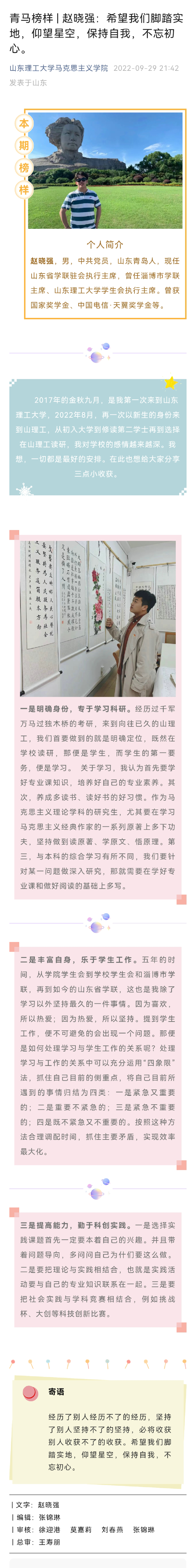 赵晓强:希望我们脚踏实地,仰望星空,保持自我,不忘初心