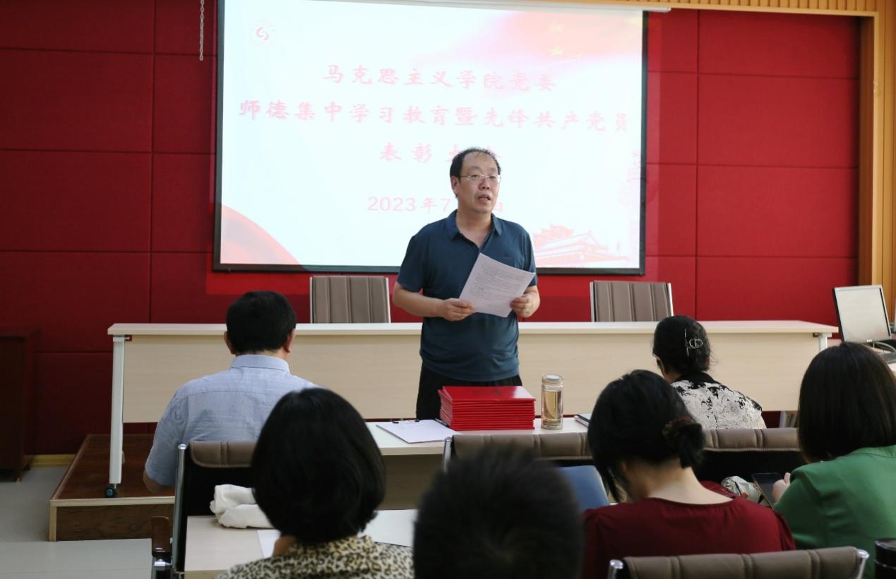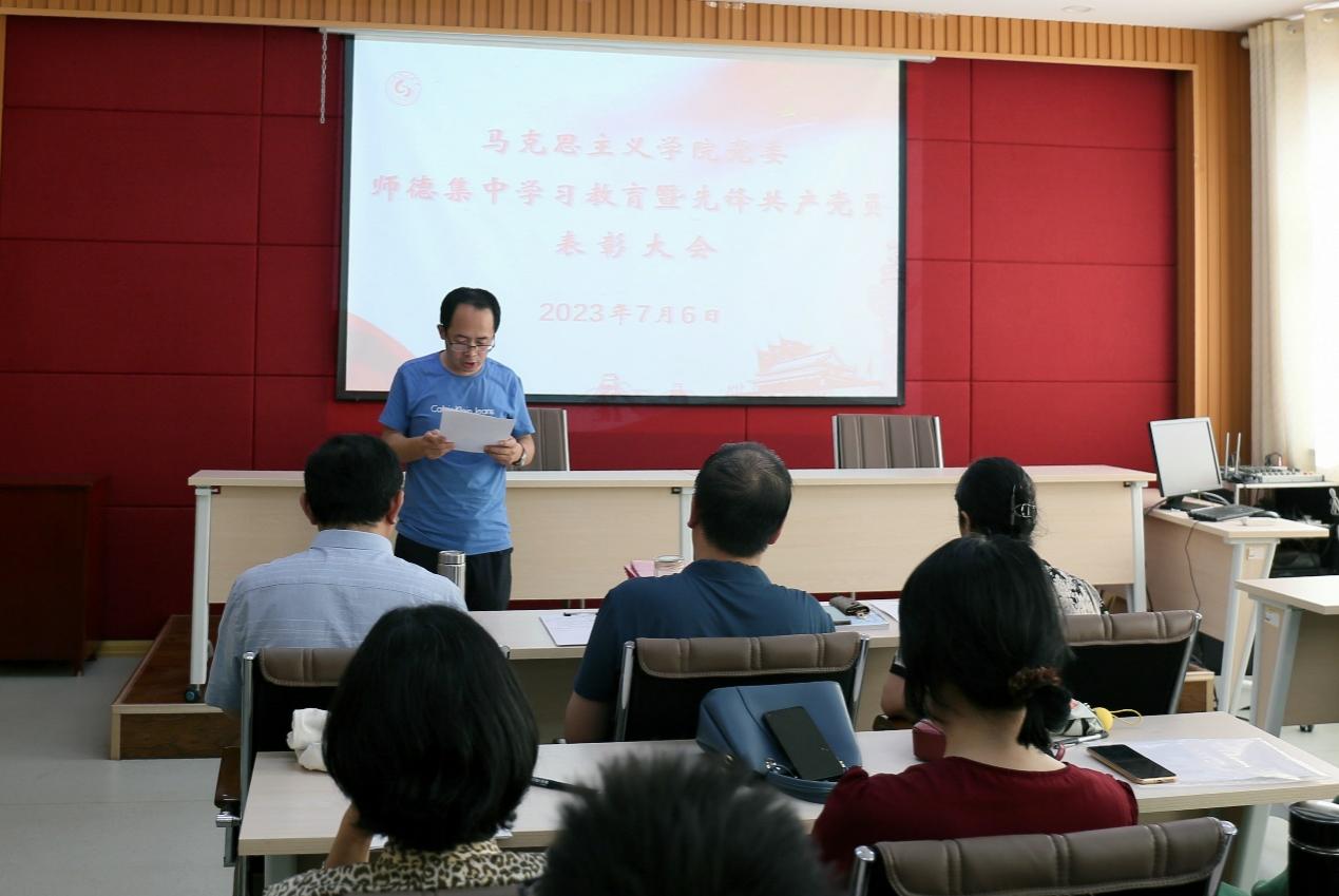 7月6日下午,公司党委师德集中学习教育暨先锋共产党员表彰大会在鸿远楼618室召开,大会以“师德集中学习教育”为主题开展学习,并对荣获2022-2023学年的先锋共产党员进行了表彰,公司领导班子、全体教职工、员工党员代表参加,公司党委副书记、副经理刘芹主持会议。