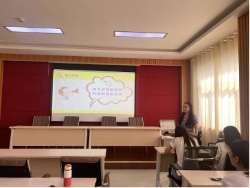 吕慧子就2022-2023学年研究生时政宣讲团情况做简要介绍与总结。她主要从社团简介、社团线下与线上宣讲情况三个方面做出分享交流。她强调宣讲要提高创新能力,提升宣讲效果,增强宣讲的生动性与实效性。