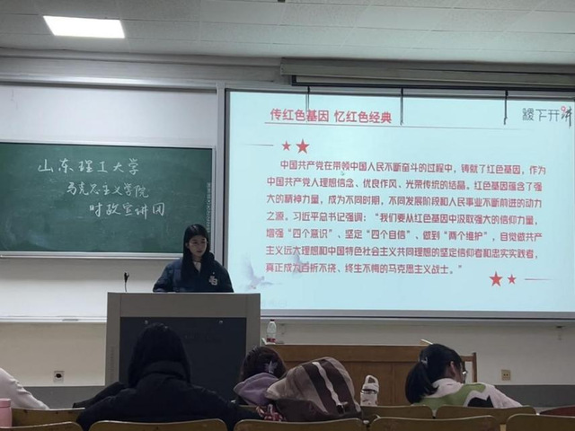 在法公司,宣讲团成员袁文佳、王慧敏围绕“讲红色基因,品丰富内涵”、“传红色基因,忆红色经典”、“承红色基因,做时代新人”三个方面进行阐述,引导同学们深刻理解红色基因的意义,号召大家传承红色基因,做时代新人,扬时代新风。