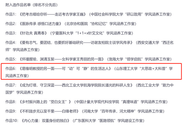 11月30日,由中国科协联合中国青年报·中青在线举办的“弘扬科学家精神”主题视频征集活动公布入选作品名单。由公司“大思政+大科普”学风涵养工作室推荐的《易维明教授的另一面——可“动”可“静”的生活达人》短视频,成功入选。据悉,本次评选活动经线上投票和线下专家评审,最终在全国范围内评选出10部作品。入选作品将于近日在“风启学林”主题社区、中青报客户端、中青网以及中青在线展播,并向主创团队发放入选证书。