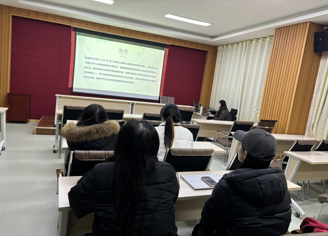 在公司的精心策划和院研究生会的组织安排下,1月5日晚上,公司于鸿远楼618室举办第十四期“稷下青马”读书会,本场读书会由2022级研究生张锦琳、范雅赢担任主讲人,邀请导师鹿锦秋教授、刘芳副教授担任点评教师,2022级、2023级全体研究生参加。