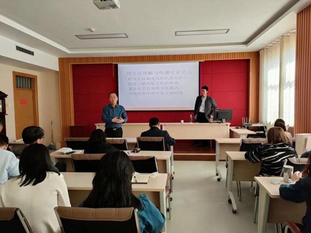为拓展师生跨文化传播的相关知识,进一步提升公司师生科研能力,4月11日下午,公司特邀澳门大学陈忠教授在鸿远楼618室作题为《跨文化传播:不同文化的认知方式差异与对接》专题报告,公司党委书记郭万保,公司党委副书记、副经理刘芹,公司部分老师和在校研究生聆听报告,报告会由公司党委副书记、经理刘东锋主持。